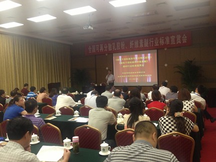 2013年8月16日,由中國建筑業(yè)協(xié)會材料分會主辦,《中國砂漿》雜志、中國預(yù)拌砂漿網(wǎng)承辦的全國可再分散乳膠粉、纖維素醚行業(yè)標(biāo)準(zhǔn)宣貫會在京召開。來自全國預(yù)拌砂漿產(chǎn)業(yè)鏈的乳液、再分散乳膠粉、纖維素醚、外墻保溫、砂漿生產(chǎn)應(yīng)用企業(yè)等行業(yè)120余名代表參加了宣貫會。陜西旭泰科技實業(yè)有限公司作為新標(biāo)準(zhǔn)制定單位之一也應(yīng)邀參加了此次會議。
